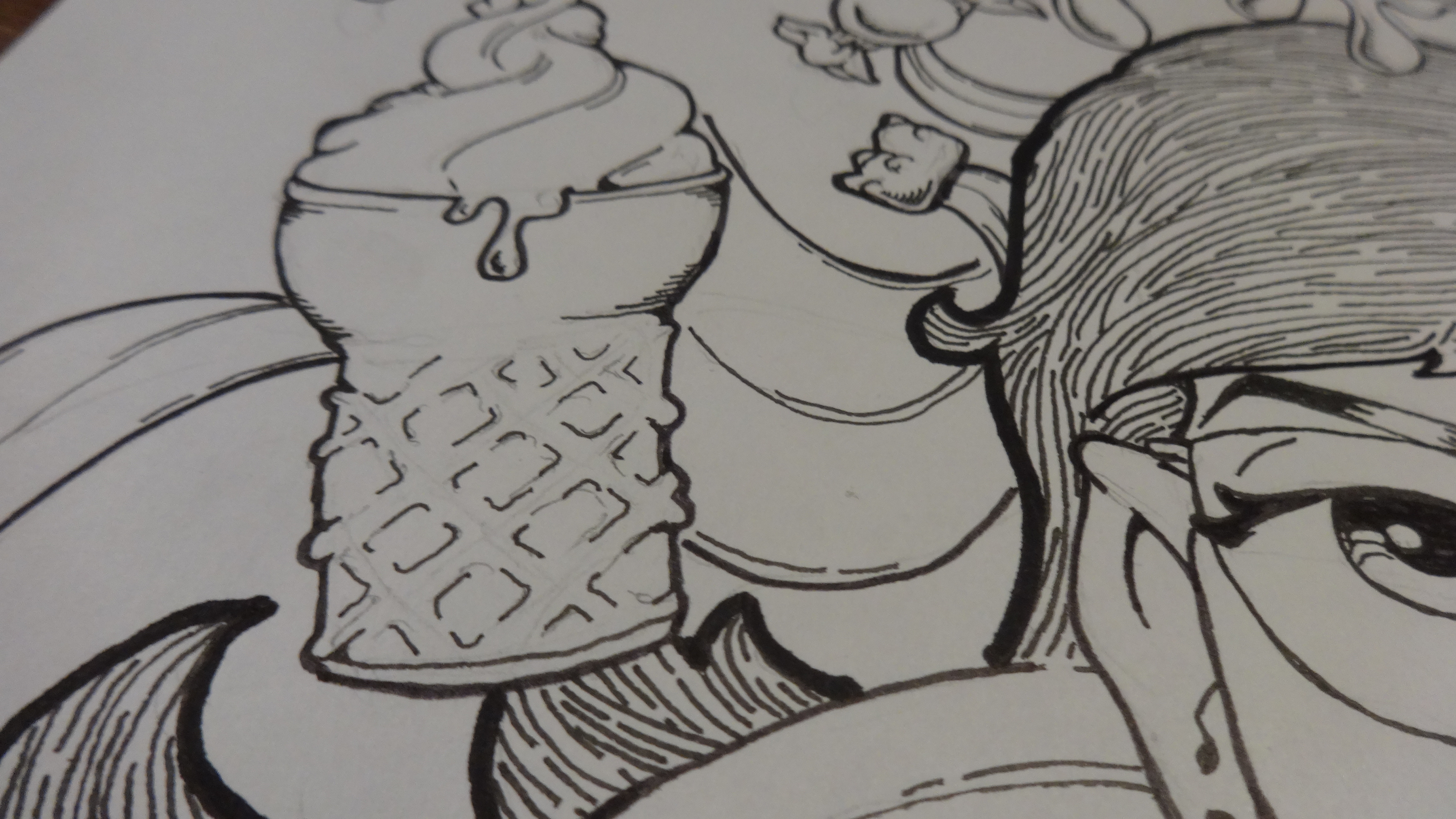 This illustration began on my trip to Hamburg to attend the Adobe Influencers Event. It was simple sketch that I created while in Starbucks. I later began the bigger drawing on the train back to Düsseldorf and even began slowly inking it. Keyword is slowly because of the shaky train. When I got home I began coloring.