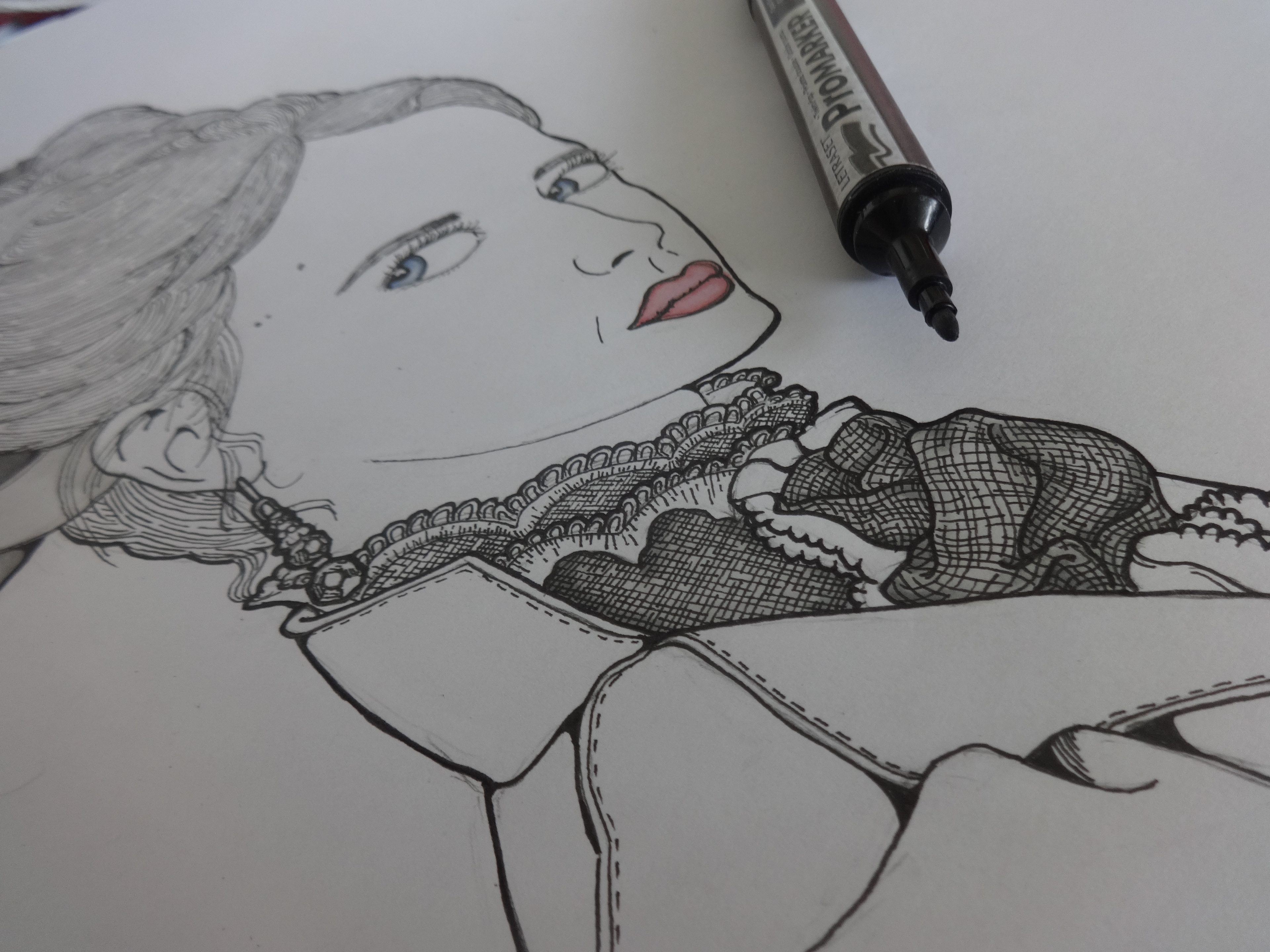I did face one issue with the illustration. This is the second time that a light colored Promarker began producing neon pink ink. I have been a fan of Promarkers for some time, so this is quite disappointing. Instead of trying to fix the problem and make it worse. I decided to remove the Neon Pink in Photoshop. However, I am now debating whether I should stop using Promarkers and switch to another brand. Having this issue with the Neon Pink marks can seriously ruin an piece. And when you have invested time in creating the image, the last thing you want is an issue to occur towards the end of the process.